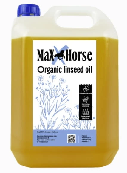 MaxxHorse Organic Linseed Oil – ekologiczny zimnotłoczony olej lniany dla koni wspierający układ pokarmowy, sierść i odporność | Suplementy MaxxHorse
