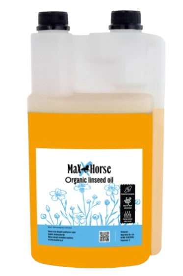 MaxxHorse Organic Linseed Oil to ekologiczny, zimnotłoczony olej lniany dla koni, który stanowi naturalne wsparcie diety dzięki idealnym proporcjom kwasów tłuszczowych omega-3 i omega-6. Proporcje te są najbardziej zbliżone do tych występujących w świeżej trawie, dlatego olej lniany szczególnie dobrze wspiera zdrowie koni, które mają ograniczony dostęp do pastwiska.