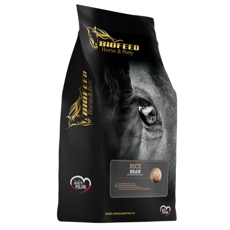 Granulowane otręby ryżowe przeznaczone do uzupełnienia podstawowej diety koni i kuców opartej na musli lub granulacie BioFeed. Można je mieszać z owsem lub meszem. Bilansując dawkę należy pamiętać o wysokiej zawartości tłuszczu.