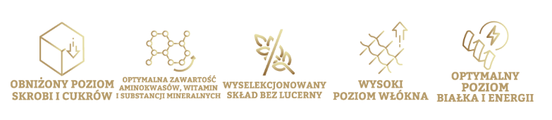 - wysoki poziom włókna zapewnia prawidłową pracę układu pokarmowego i ułatwia utrzymanie prawidłowej masy ciała u koni z tendencją do chudnięcia