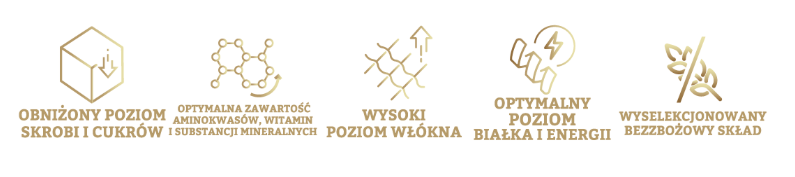 - wysoki poziom włókna zapewnia prawidłową pracę układu pokarmowego i ułatwia utrzymanie prawidłowej masy ciała u koni z tendencją do chudnięcia