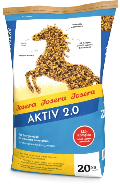 Josera Aktiv 2.0 to nowoczesne musli energetyczne, stworzone z myślą o koniach aktywnych, sportowych i rekreacyjnych. Oparte na naturalnych składnikach, bez owsa, z wysokiej jakości źródłami energii i lekkostrawnych włókien, zapewnia optymalne odżywienie, ochronę mięśni oraz wsparcie trawienia.