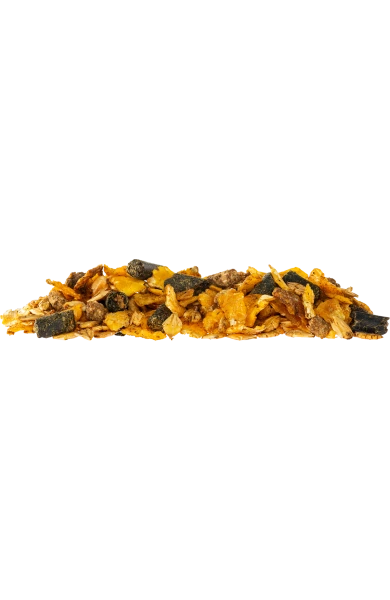 płatki kukurydziane poddane obróbce hydrotermicznej (36,5%), płatki jęczmienne poddane obróbce hydrotermicznej (28%), mączka z traw i roślin zielonych (11%), olej roślinny rafinowany (5,8%), otręby pszenne (4,3%), siemię lniane ekstrudowane (3,3%), mielona kukurydza (3,1%), melasa (2,2%), śruta poekstrakcyjna z nasion słonecznika (2%), węglan wapnia (1,2%), chlorek sodu (0,7%), fosforan jednowapniowy (0,5%), suszona pulpa z cykorii (0,4%), tlenek magnezu (0,3%).