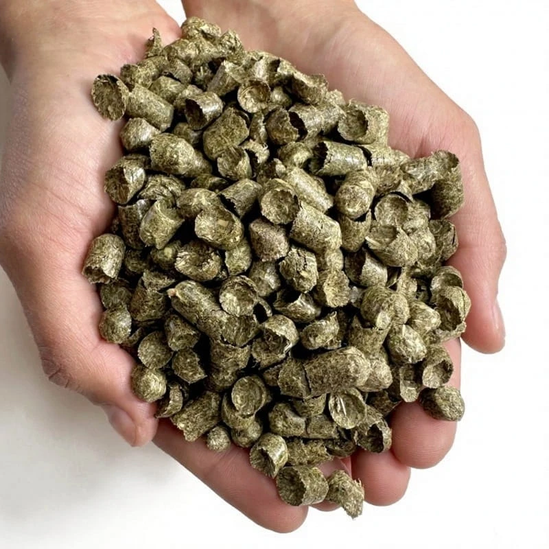 100% granulowany susz z traw z certyfikowanych upraw ekologicznych – bez dodatków chemicznych i konserwantów.