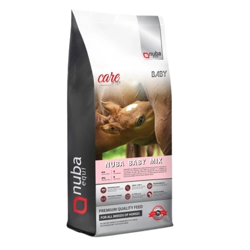 Nuba Baby Mix 2G to specjalistyczna pasza dla najmłodszych koni – od 5 tygodnia życia do odsadzenia – zaprojektowana tak, aby uzupełnić niedobory wynikające ze spadku wartości odżywczych mleka matki i wspierać prawidłowy rozwój źrebięcia. Jej receptura dostarcza optymalną ilość białka, wapnia, fosforu i mikroelementów, które są niezbędne do budowy silnego układu kostnego i mięśniowego. Forma granulatu jest łatwa do gryzienia i przeżuwania, a probiotyki oraz prebiotyki zawarte w drożdżach wspierają mikroflorę jelitową i procesy trawienne.