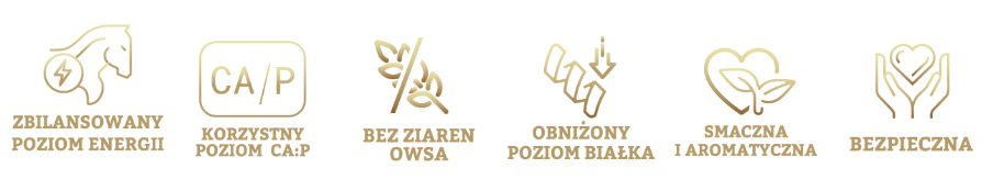 - podstawowa mieszanka paszowa uzupełniająca dla koni i kuców w lekkim i średnim treningu