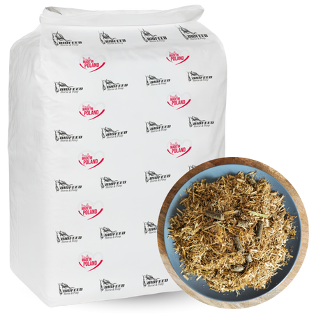 BIOFEED Horse & Pony Hooves Chaff to specjalistyczna, niskoskrobiowa sieczka dla koni i kuców, idealna dla zwierząt z tendencją do ochwatu, insulinooporności oraz dla koni wrzodowych. Produkt nie zawiera lucerny ani melasy, dzięki czemu doskonale sprawdza się także u koni alergicznych i wrażliwych. Sieczka jest wzbogacona o witaminy, minerały i biotynę wspierającą szybki wzrost oraz wysoką jakość rogu kopytowego. Dodatkowo wyróżnia się naturalnym aromatem cynamonu, który poprawia smakowitość i chętnie jest pobierany przez konie.