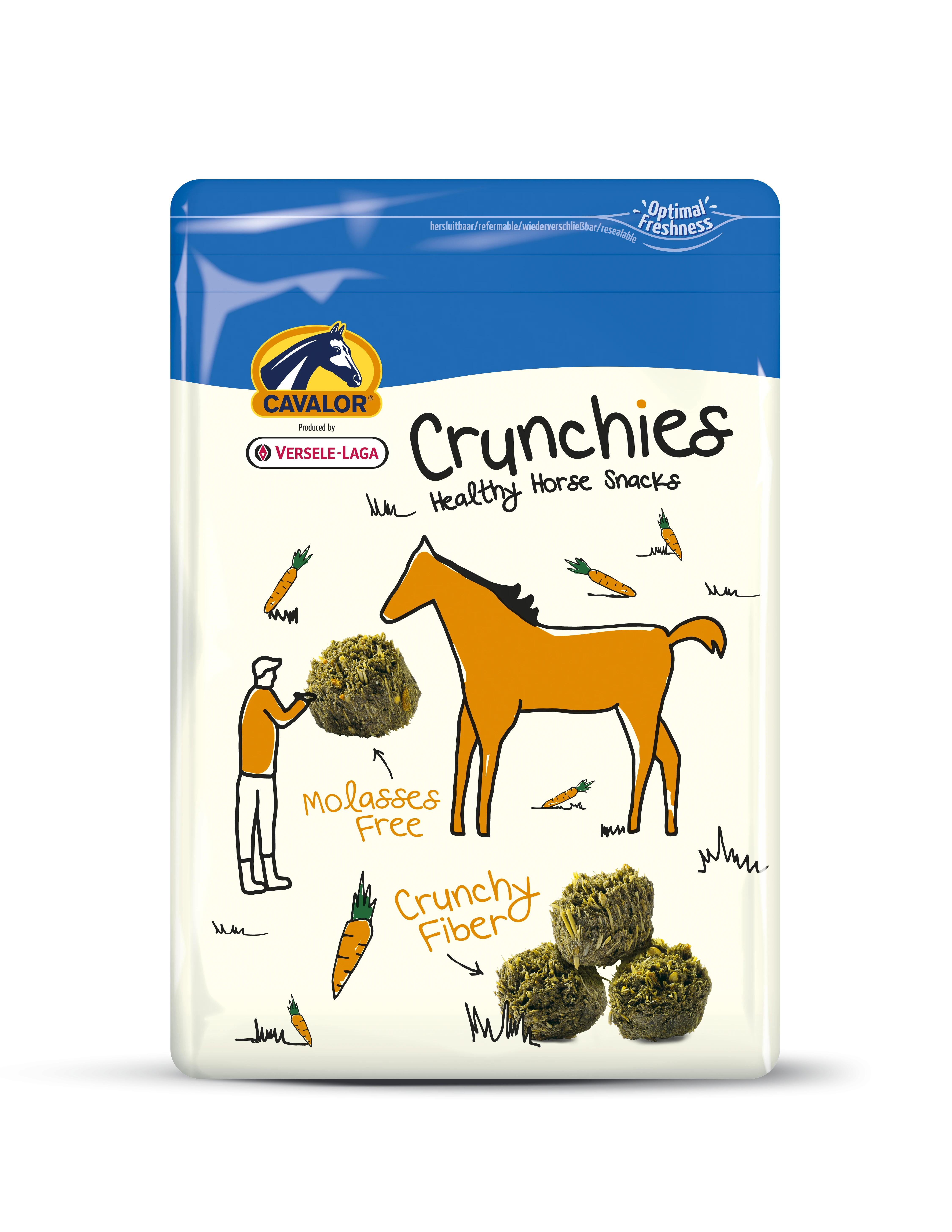 Cavalor Crunchies to chrupiące i zdrowe przysmaki dla koni, stworzone z naturalnych składników, takich jak marchew, zboża oraz zioła. To idealna forma nagrody po treningu, podczas pracy z ziemi lub po prostu jako smaczny dodatek do codziennej rutyny.