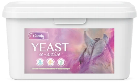 Candy Yeast Co-Active to specjalistyczny suplement dla koni wspierający układ pokarmowy, mikroflorę jelitową oraz prawidłowe trawienie włókna. Preparat przeznaczony jest dla koni sportowych, rekreacyjnych, starszych oraz w rekonwalescencji.