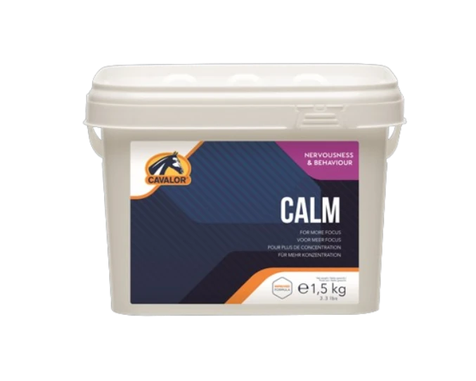 Cavalor Calm to suplement uspokajający dla koni, przeznaczony do krótkiego i średnioterminowego stosowania u koni reagujących stresem na bodźce zewnętrzne. Produkt polecany jest szczególnie dla koni młodych, nerwowych oraz wrażliwych, które łatwo ulegają presji otoczenia i wykazują nadmierne pobudzenie lub problemy z koncentracją.