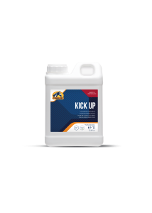 Cavalor Kick Up to płynny suplement wzbogacony o łatwo i szybko przyswajalne witaminy, minerały, aminokwasy oraz aromatyczne ekstrakty roślinne. Preparat zawiera również witaminy z grupy B oraz cholinę, które odgrywają istotną rolę w przemianach materii i wspierają produkcję energii w organizmie konia.