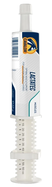 Cavalor LactaTec Paste to skoncentrowany suplement w formie pasty doustnej, przeznaczony do stosowania u koni sportowych podczas intensywnych treningów, zawodów oraz wielodniowych imprez. Preparat wspiera optymalną pracę mięśni w kluczowych momentach, pomaga zapobiegać ich zmęczeniu i sztywności oraz wspomaga szybką regenerację po wysiłku.