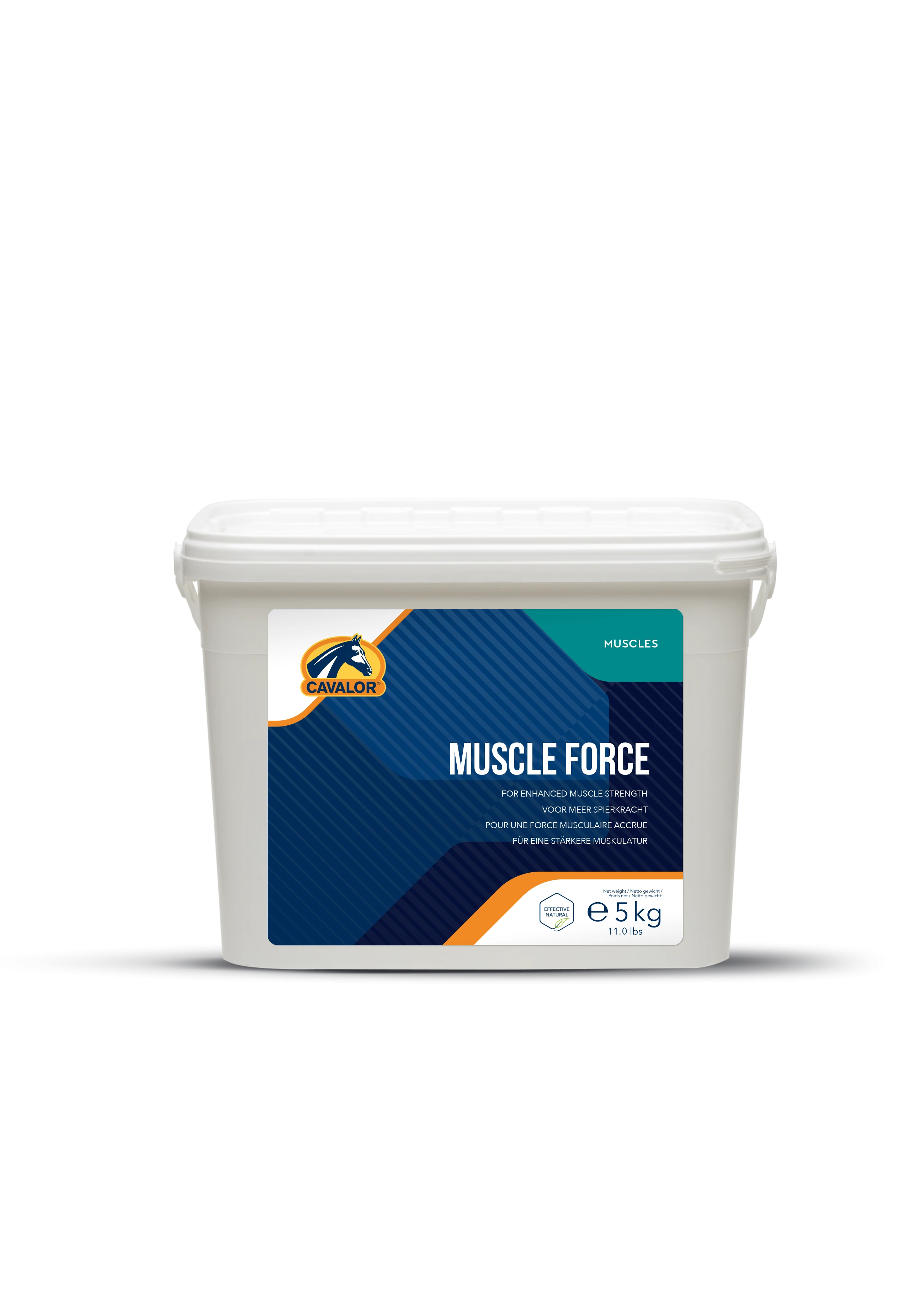 Cavalor Muscle Force to naturalny suplement dla koni wspierający szybki i trwały rozwój siły oraz objętości mięśni, przeznaczony szczególnie dla koni sportowych wracających do pracy po okresie odpoczynku, koni po lekkim treningu oraz młodych koni przygotowywanych do selekcji i intensywniejszego wysiłku. W tych okresach zapotrzebowanie na odpowiednie aminokwasy i wsparcie regeneracji mięśni jest zwiększone, a ich niedobór może ograniczać rozwój masy mięśniowej. Cavalor Muscle Force stanowi 100% naturalne rozwiązanie, które w połączeniu z odpowiednim treningiem sprzyja rzeczywistej budowie tkanki mięśniowej, a nie jedynie jej chwilowemu uwydatnieniu. Preparat wspiera zarówno wzrost komórek mięśniowych, jak i ogranicza ich degradację, co pozwala uzyskać trwałe i widoczne efekty w postaci poprawy siły, wytrzymałości i jakości muskulatury.
