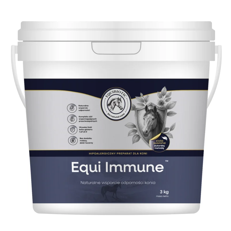 Equi Immune™ to innowacyjny suplement hipoalergiczny, opracowany z myślą o utrzymaniu silnego układu odpornościowego i szybkiej regeneracji po wysiłku, chorobie lub stresie. Formuła łączy działanie bioaktywnych składników – antyoksydantów, witamin i immunostymulatorów – dla kompleksowej ochrony organizmów sportowych i rekreacyjnych koni.
