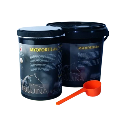 Equina Myofortil Ultra to specjalistyczny preparat aminokwasowy wspierający muskulaturę, kondycję i wytrzymałość koni sportowych. Zwiększa odporność organizmu na duże obciążenia, wspiera metabolizm energetyczny i przyspiesza regenerację mięśni. Regularna suplementacja sprzyja rozrostowi muskulatury, poprawia jezdność oraz chroni komórki mięśniowe przed wolnymi rodnikami.
