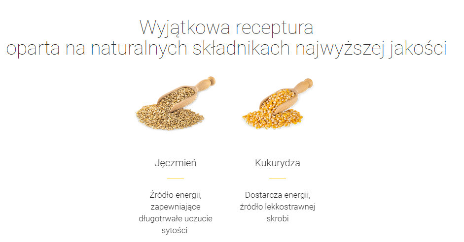 Skład: mielona kukurydza (28,1%), węglan wapnia (18,2%), otręby pszenne (18%), chlorek sodu (8%), fosforan jednowapniowy (7,1%), tlenek magnezu (4,6%), fosforan dwuwapniowy (3,5%), melasa (2%), olej roślinny rafinowany (1,5%), zioła (nasiona ostropestu plamistego, ziele pokrzywy, korzeń mniszka lekarskiego, liście głogu) (1%).