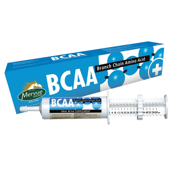 BCAA 60 ml to skoncentrowana pasta dla koni zawierająca unikalne połączenie aminokwasów rozgałęzionych: L-waliny, L-leucyny i L-izoleucyny. Preparat został stworzony z myślą o wsparciu regeneracji i odbudowy mięśni po ciężkim wysiłku fizycznym, zawodach, treningach wytrzymałościowych oraz w okresie powrotu do pracy po urazach mięśni.
