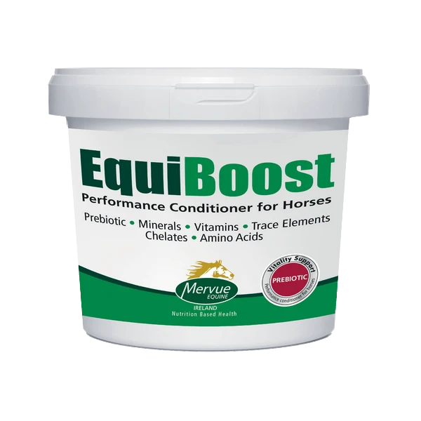 EquiBoost to zaawansowany suplement witaminowo-mineralny dla koni sportowych, wyczynowych i intensywnie trenowanych, wzbogacony o prebiotyk FOS oraz kwasy Omega 3. Preparat został opracowany z myślą o koniach poddanych dużym obciążeniom treningowym, startowym oraz stresowi metabolicznemu.