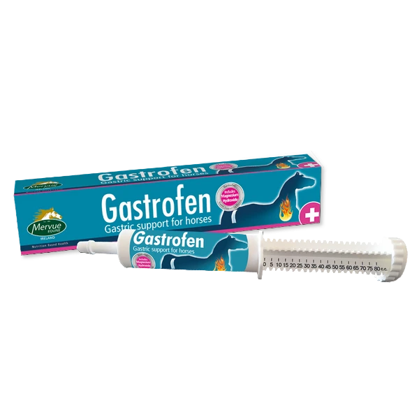 Gastrofen Pasta to uzupełniająca mieszanka paszowa opracowana przez Mervue Laboratories z myślą o koniach zagrożonych zespołem wrzodów żołądka (EGUS), zapaleniem okrężnicy oraz koniach w trakcie rekonwalescencji po chorobie wrzodowej. Preparat działa wielokierunkowo: zobojętnia nadmiar kwasu żołądkowego, wspiera regenerację błony śluzowej oraz stabilizuje mikroflorę przewodu pokarmowego.