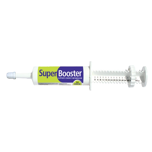 Super Booster to smaczna, wysokowydajna pasta energetyczna – buster dla koni sportowych na czas zawodów. Zawiera wysoki poziom L-karnityny, kwasów Omega 3, przeciwutleniaczy oraz TMG i ATP, które wspierają metabolizm, wydajność i energię w kluczowych momentach startowych.