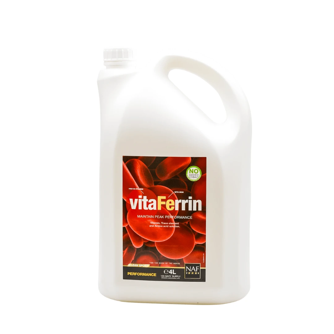 NAF VitaFerrin to bogaty w żelazo, witaminy i mikroelementy suplement wspierający organizm konia w okresach osłabienia, rekonwalescencji oraz zwiększonego wysiłku. Preparat polecany jest koniom po chorobach, długim transporcie, w okresach przejściowych (jesień, wiosna) oraz koniom sportowym wymagającym dodatkowego wsparcia wydolnościowego.