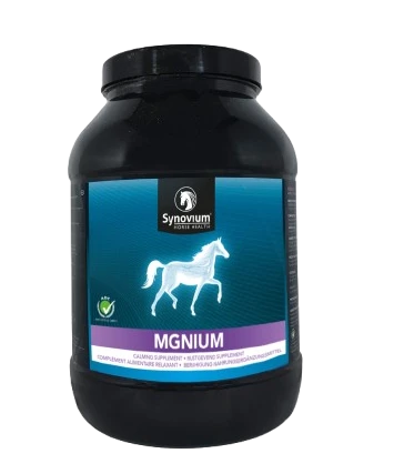 Synovium® Mgnium to weterynaryjny suplement diety dla koni w formie pelletu, opracowany w celu wsparcia układu nerwowego, poprawy nastroju oraz redukcji napięcia mięśniowego. Szczególnie polecany dla koni sportowych, nadpobudliwych, młodych oraz w okresach zwiększonego stresu.