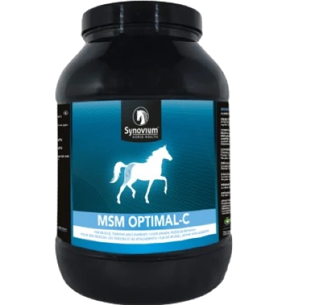 SYNOVIUM MSM OPTIMAL-C to skuteczny suplement wspierający zdrowie ścięgien, mięśni i więzadeł, poprawiający regenerację i mobilność koni, szczególnie polecany dla koni sportowych i intensywnie pracujących.
