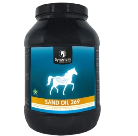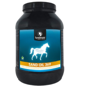 SYNOVIUM SAND-OIL 369 to skuteczny suplement wspierający oczyszczanie jelit z piasku oraz zdrowie układu pokarmowego, szczególnie polecany dla koni przebywających na piaszczystych terenach.
