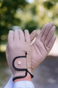 Wykonane z elastycznego, oddychającego materiału, który idealnie dopasowuje się do dłoni, zapewniając precyzyjny chwyt wodzy: Stylowe, klasyczne i niezwykle wygodne rękawiczki jeździeckie stworzone z myślą o codziennych treningach i eleganckich występach.