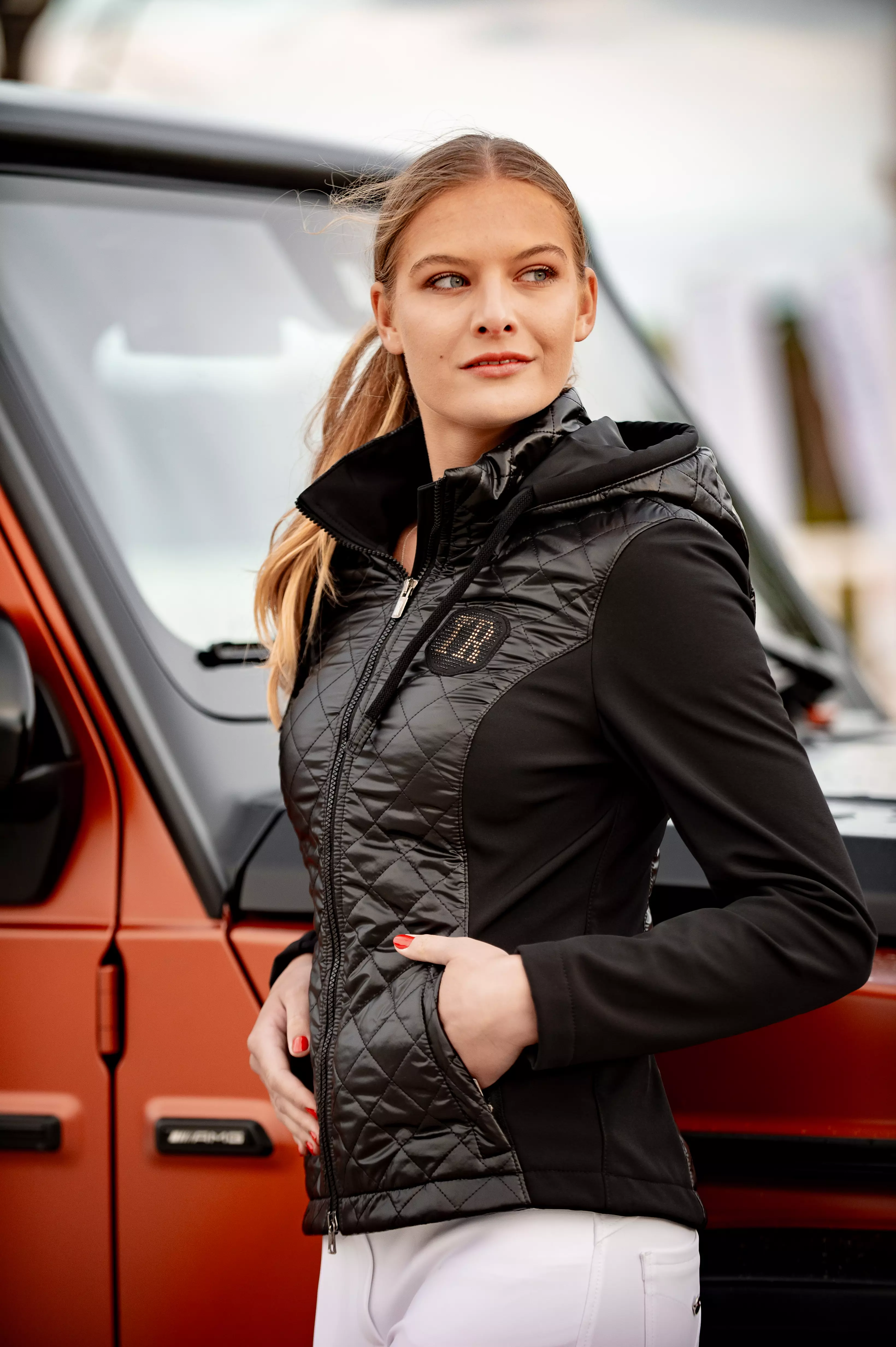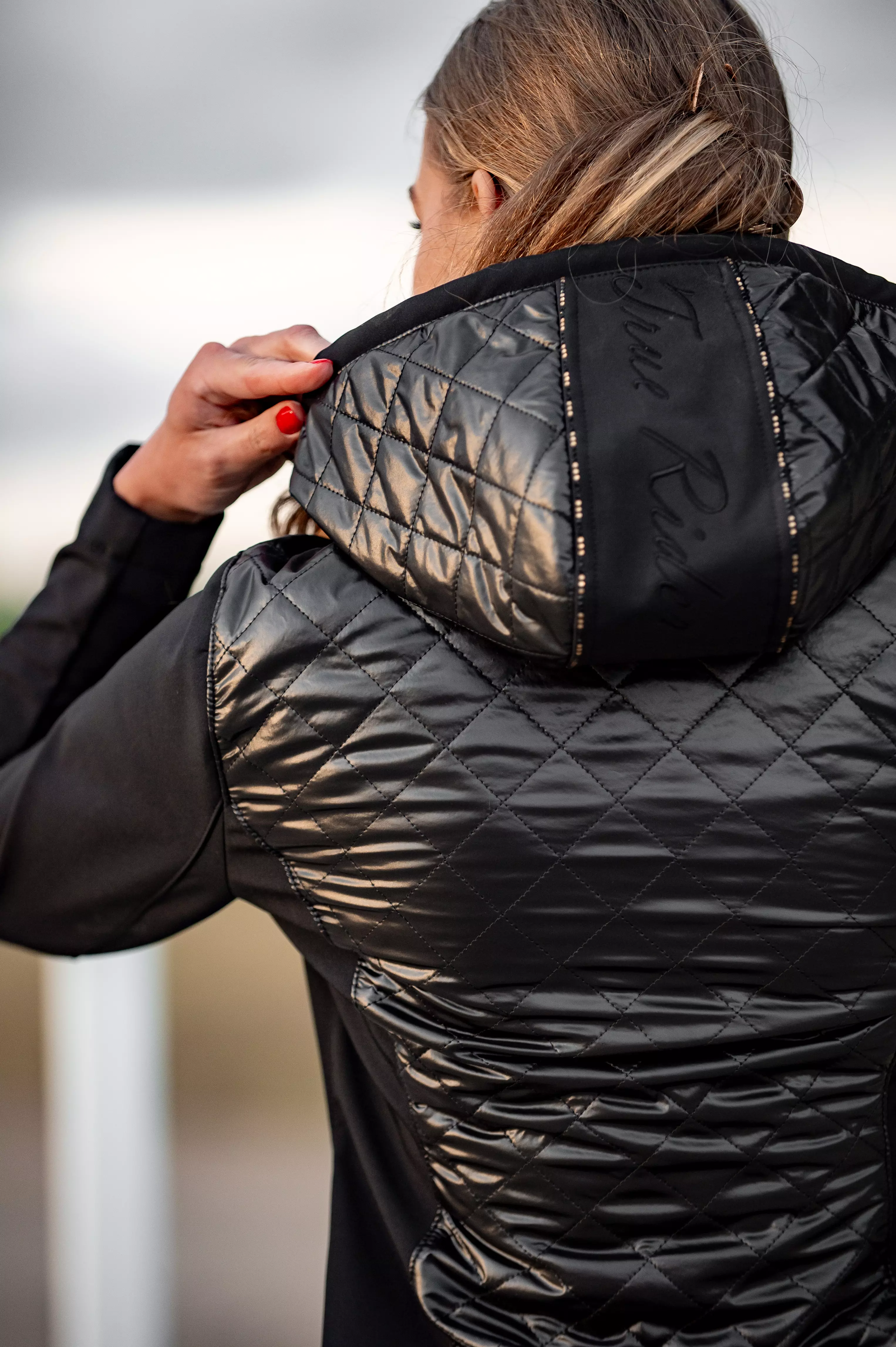 - Odpinany kaptur z dekoracyjnym napisem marki, również oprawionym subtelnymi diamencikami – elegancki i praktyczny jednocześnie.