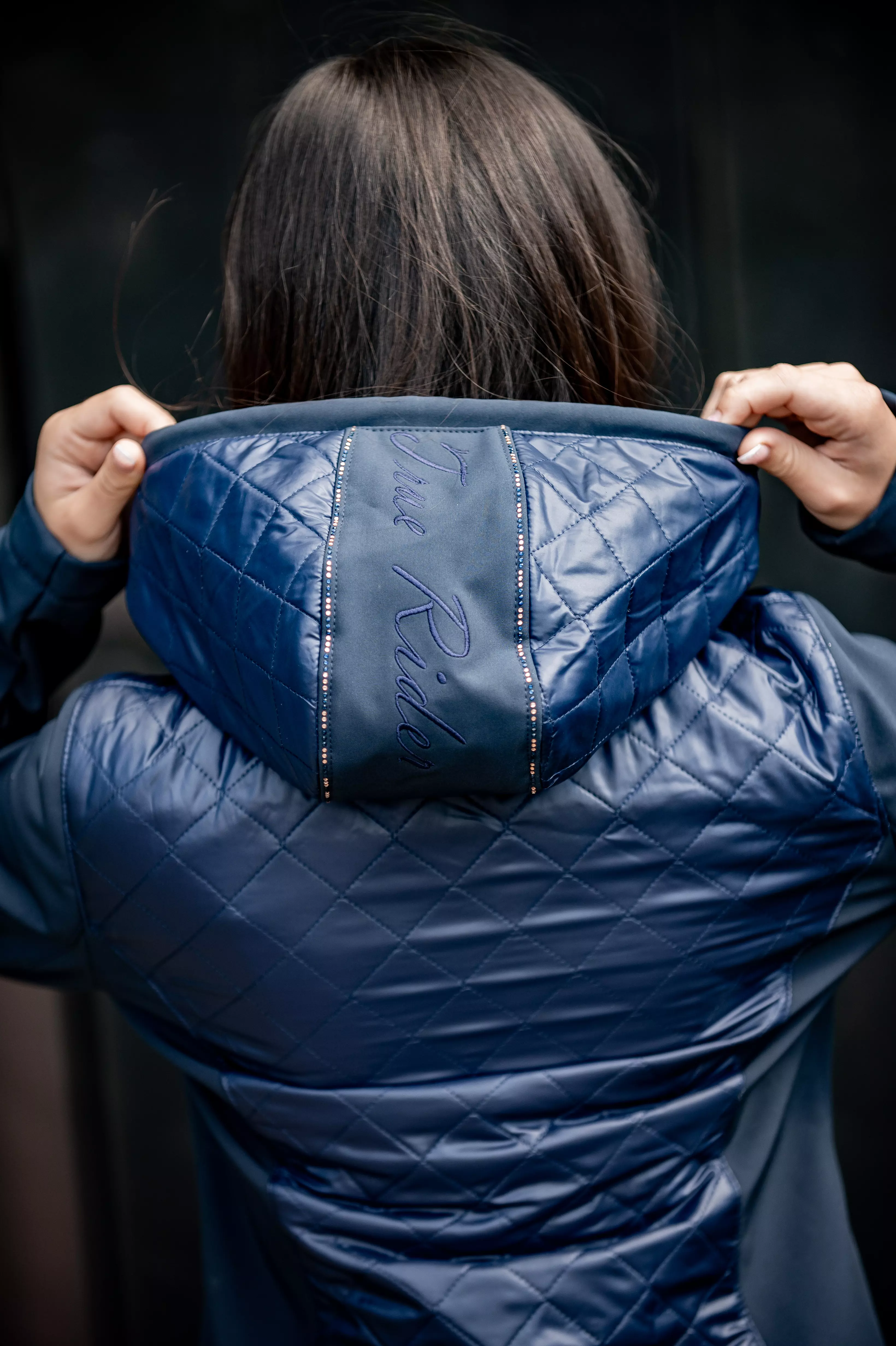 - Odpinany kaptur z dekoracyjnym napisem marki, również oprawionym subtelnymi diamencikami – elegancki i praktyczny jednocześnie.