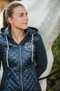 - Dwie głębokie kieszenie na zamek – zmieścisz w niej wszystko co niezbędne – cukierki dla koni i rękawiczki.