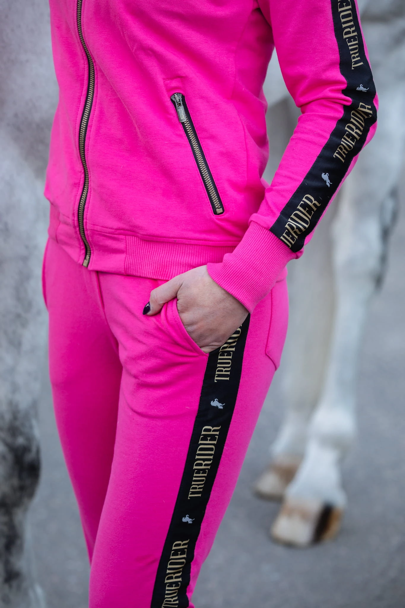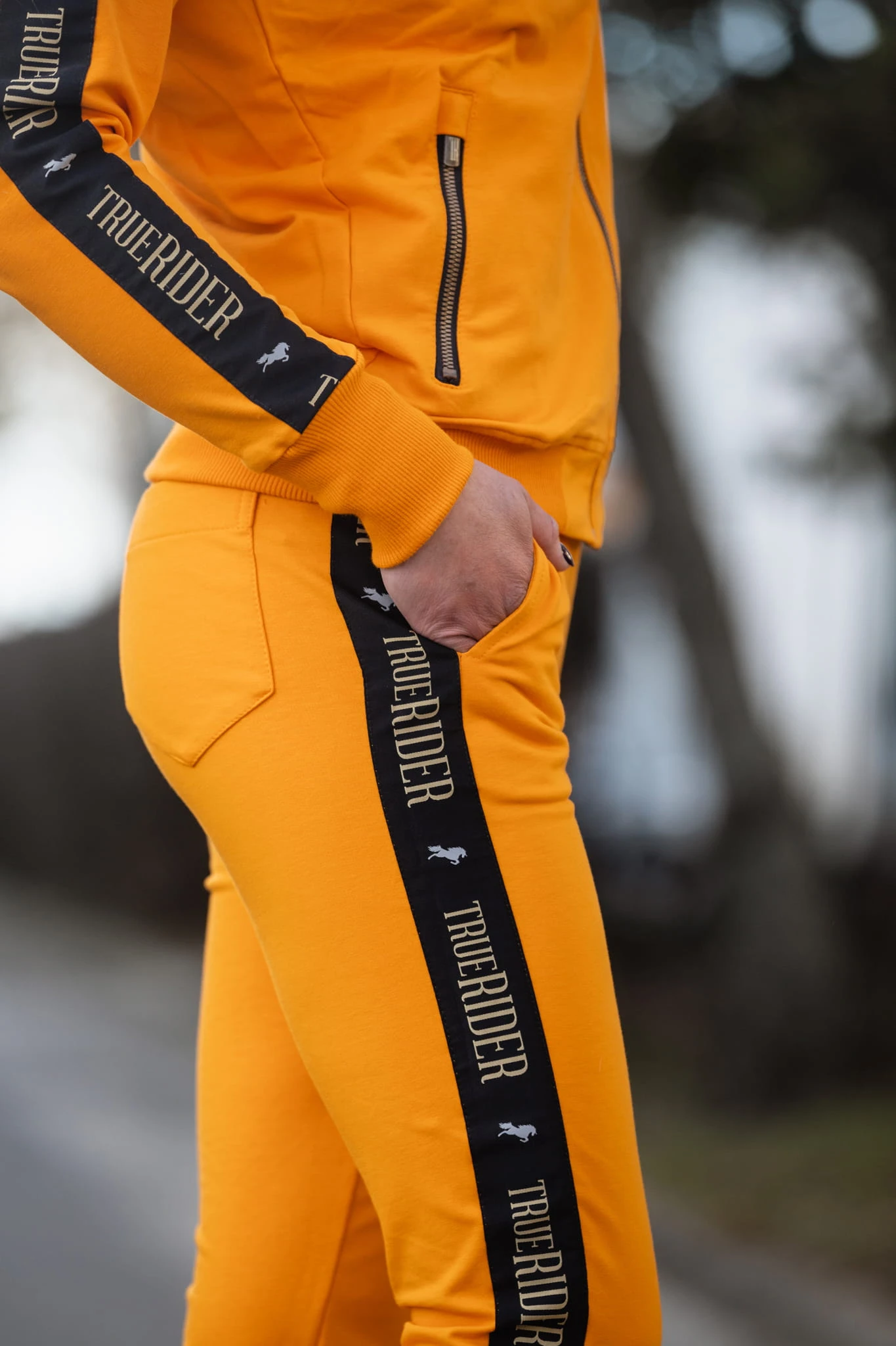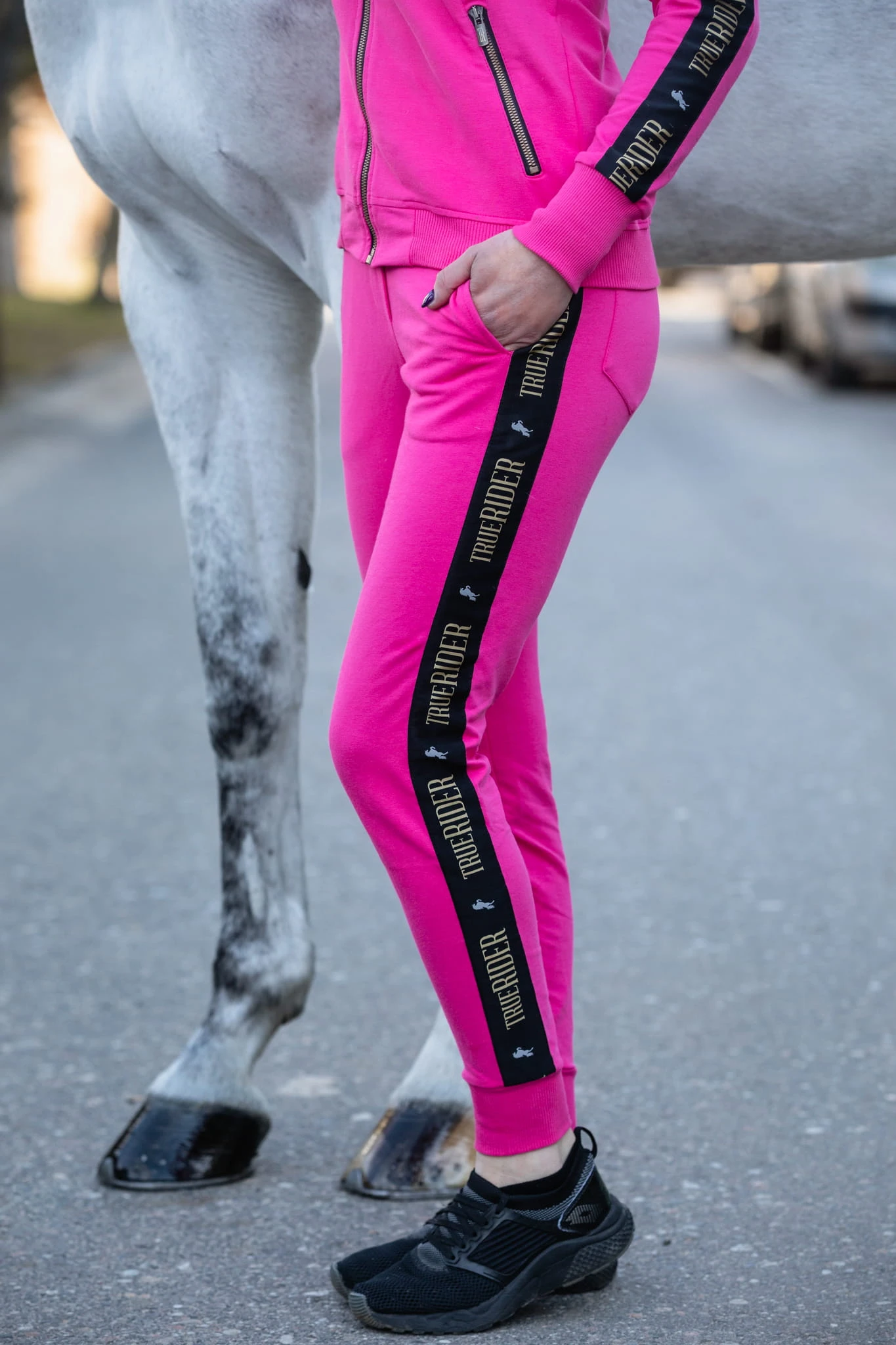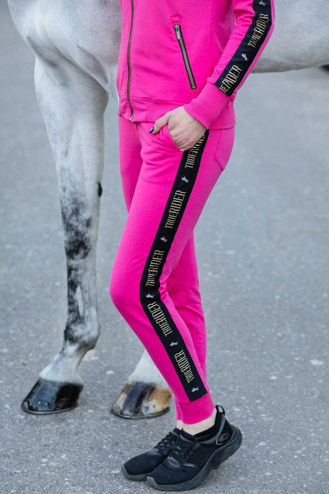 Projektując naszą odzież trzymamy się prostej zasady - bez względu na to, co mamy na sobie, lubimy wyglądać zgrabnie i elegancko, ale przy tym nawiązywać do naszego sportowego charakteru. Dlatego - w teorii najprostsze spodnie dresowe - wyposażyłyśmy w wysmuklające boczne lampasy i ściągacze podkreślające kostkę.