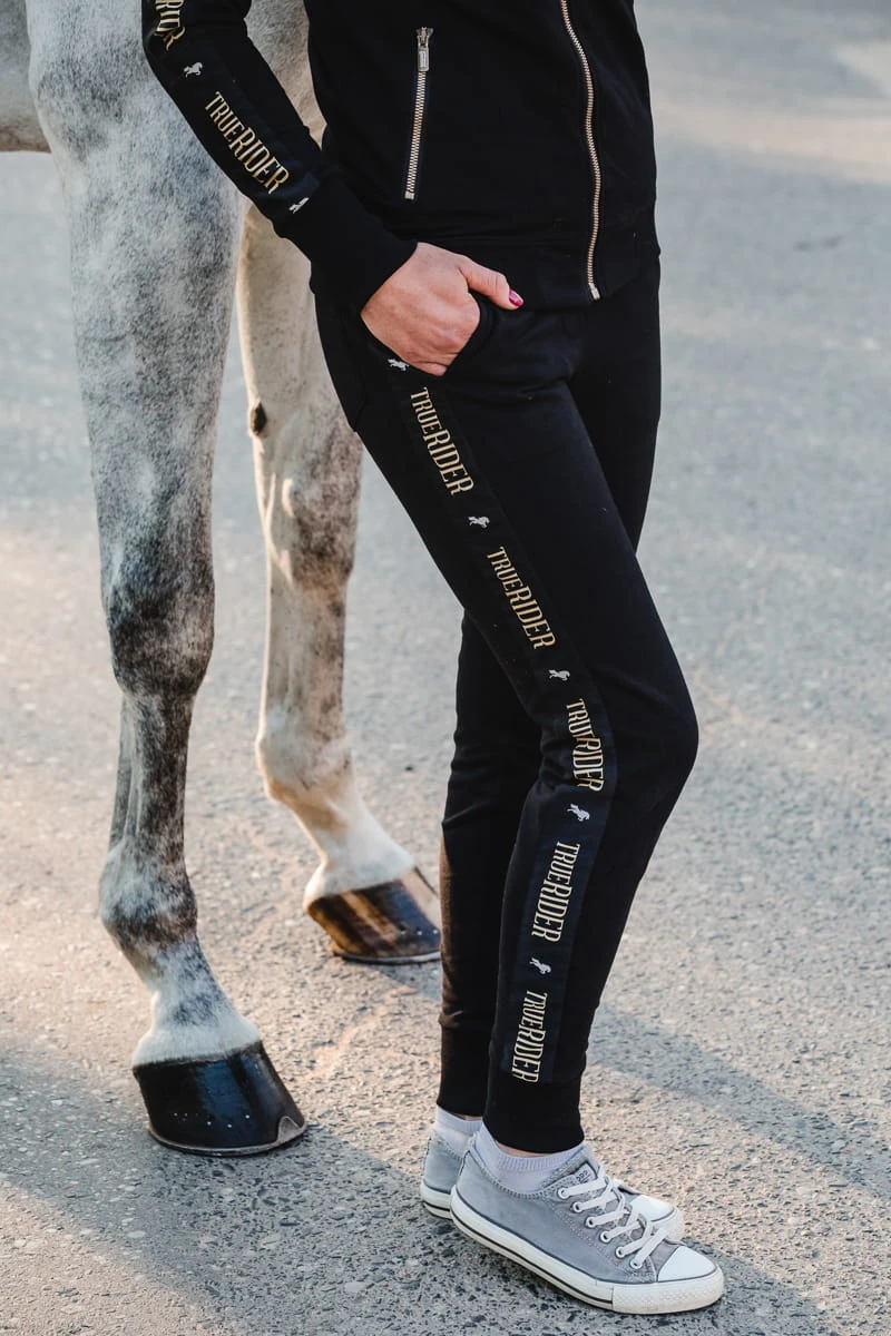 - Wybierając spodnie w kolorze czarnym możecie tworzyć całe komplety z innymi produktami z kolekcji Black & Gold, dodając m.in.: bluza, letnie legginsy, koszulkę techniczną, kamizelkę, czapeczkę z daszkiem, czaprak i nauszniki.