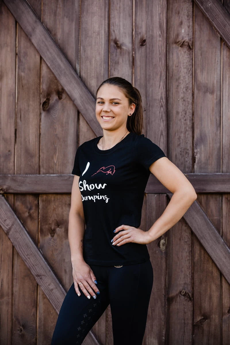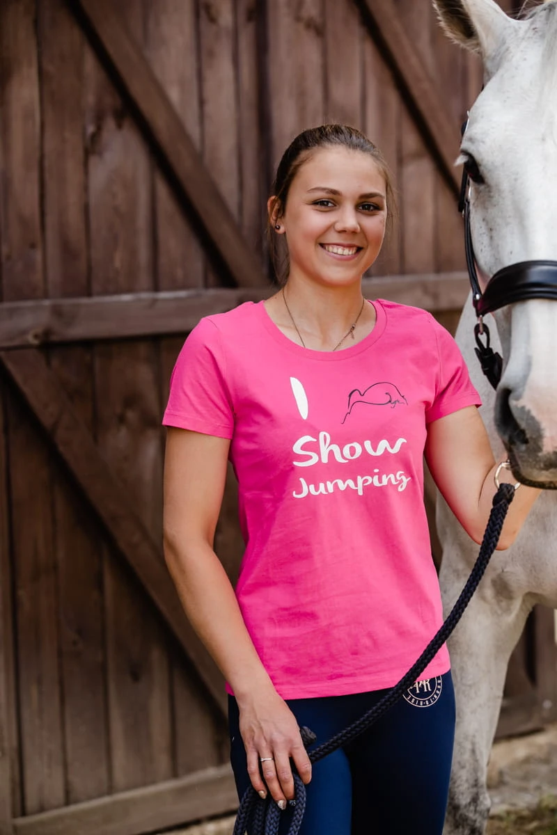 Nadruk I <3 Show Jumping – świetnie sprawdzi się zarówno w stajni, jak i na wakacjach, czy też podczas wypadu na miasto! Z dumą możesz zaprezentować wszędzie swoją pasję :)