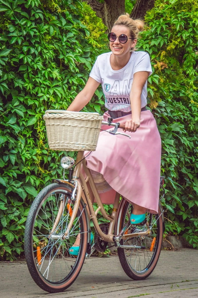 - Dzięki strukturze materiału, szczególnie na bananowym, pudrowych różu i białym T-shircie nie widać plam po intensywniejszych jazdach ;)