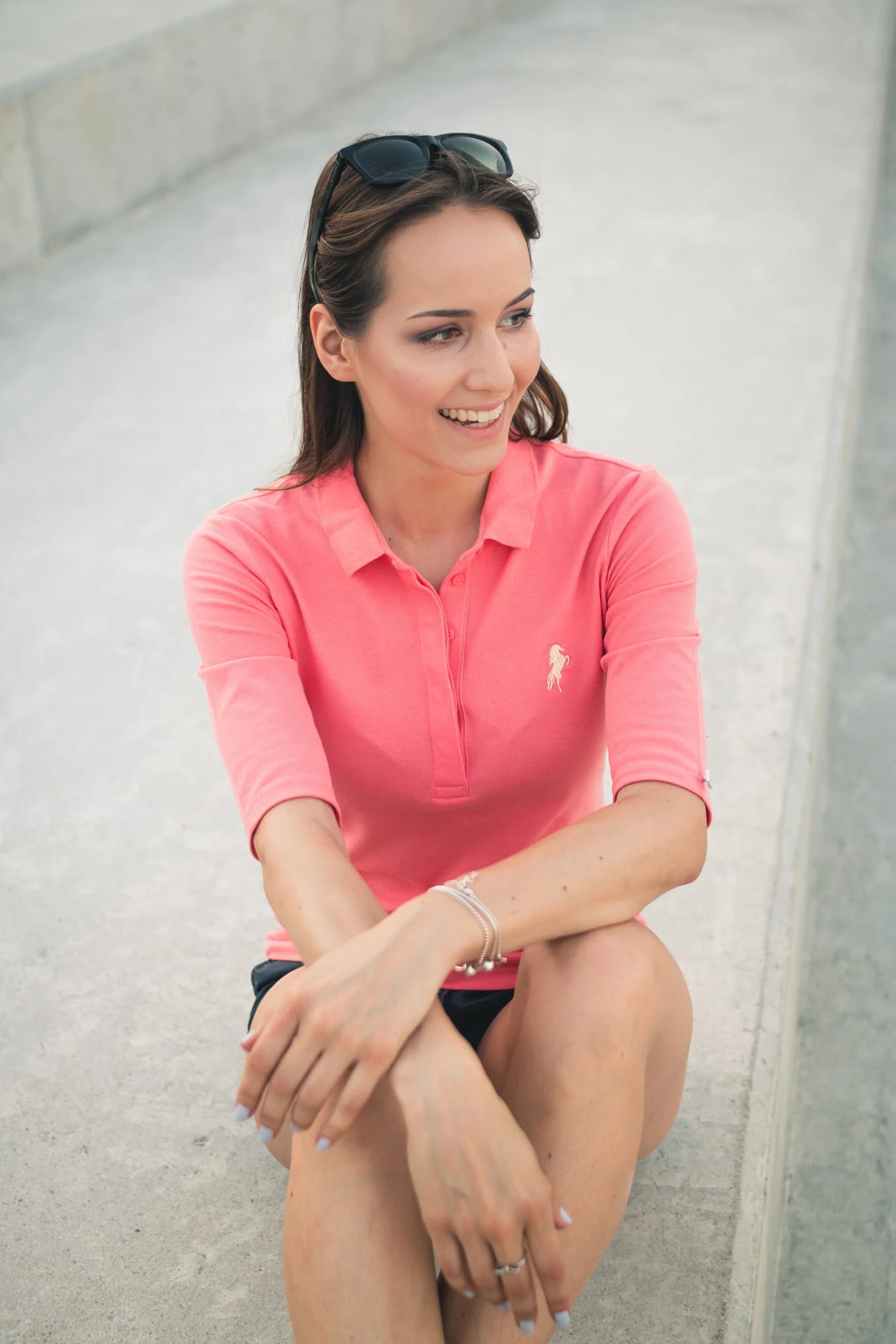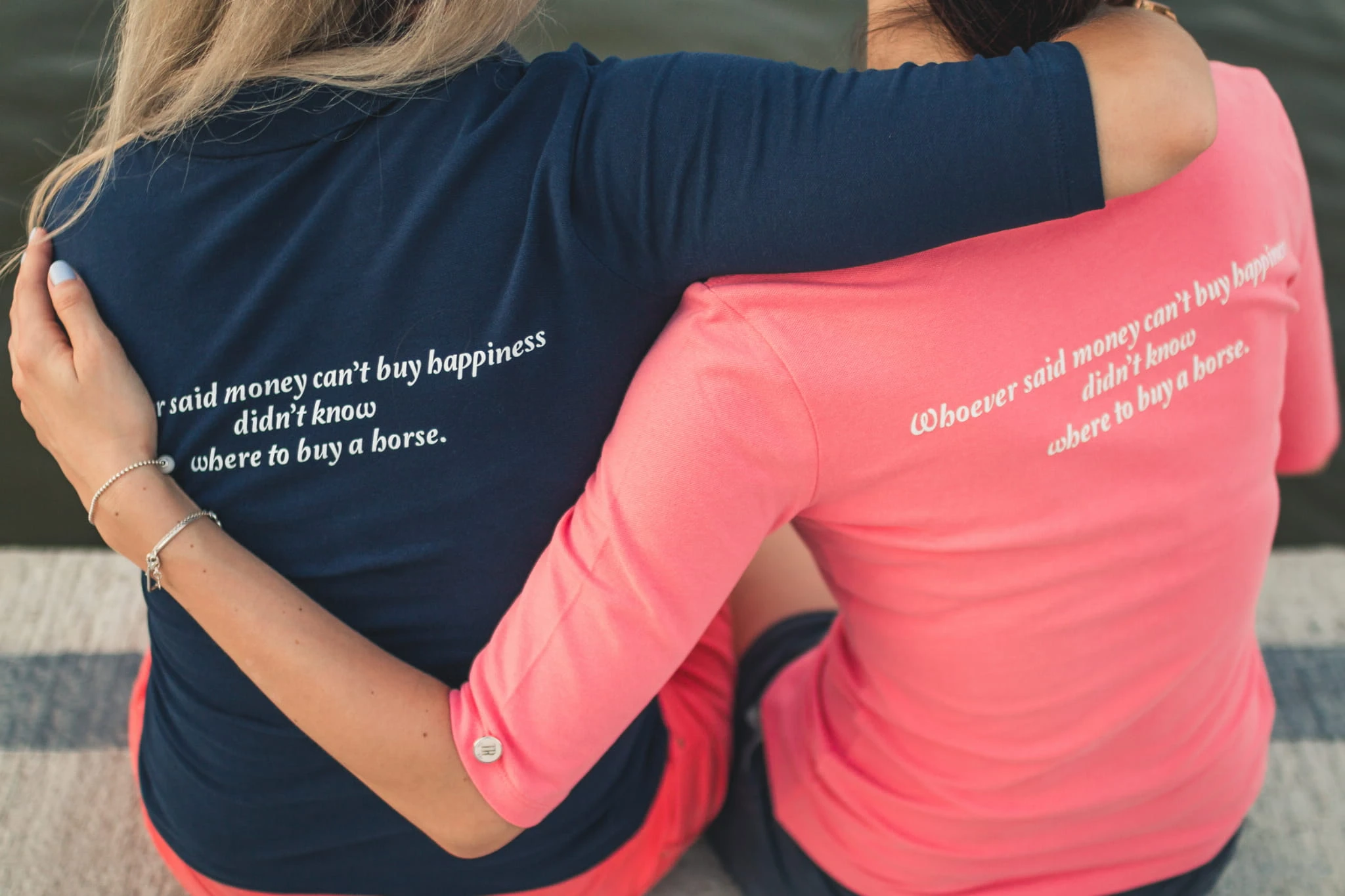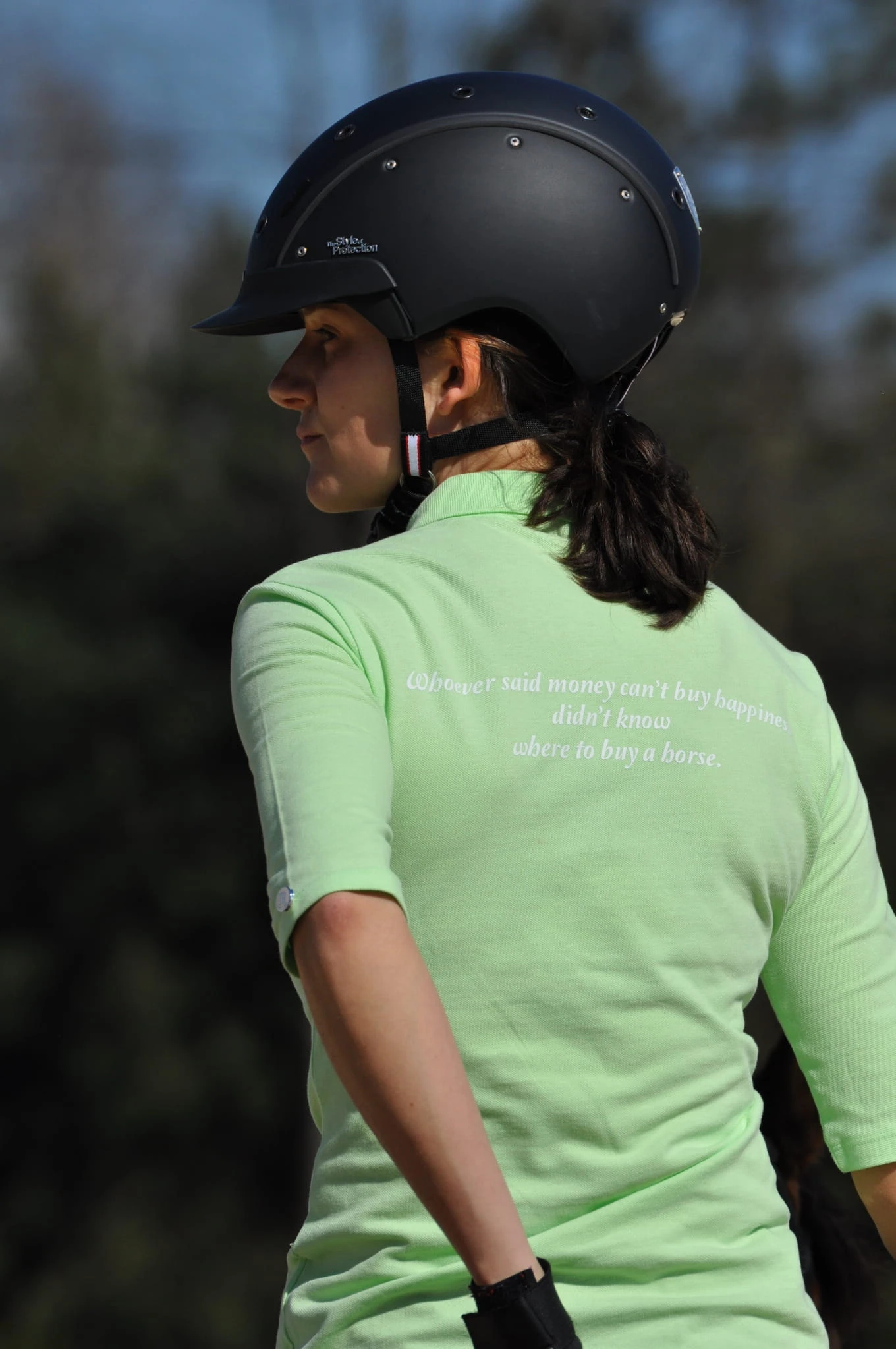 Nowa kolekcja Happiness urzeknie Cię swoimi kolorami i miękkim materiałem ze 100% bawełny organicznej. Sprawnie łączy luz z elegancją – sportowy krój oraz wyprofilowane rękawy długości ¾ wraz z małymi elementami dekoracyjnymi dodają polówce charakteru i sprawiają, że świetnie sprawdza się na co dzień do stajni. Wystarczy jednak, że do granatowej wersji założysz białe bryczesy i masz już komplet na przegląd weterynaryjny na zawodach :)