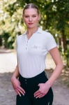 - Polo jest wykonane z wysokiej jakości bawełny (95%) i dodatku elastanu (5%) dzięki temu idealnie dopasowuje się do ciała, ale nie krępuje ruchów, a po treningu pozwala jeźdźcowi nadal odczuwać komfort.